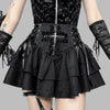 Schwarzer Gothic-Rock mit Korsett, Kreuz und Rüschen