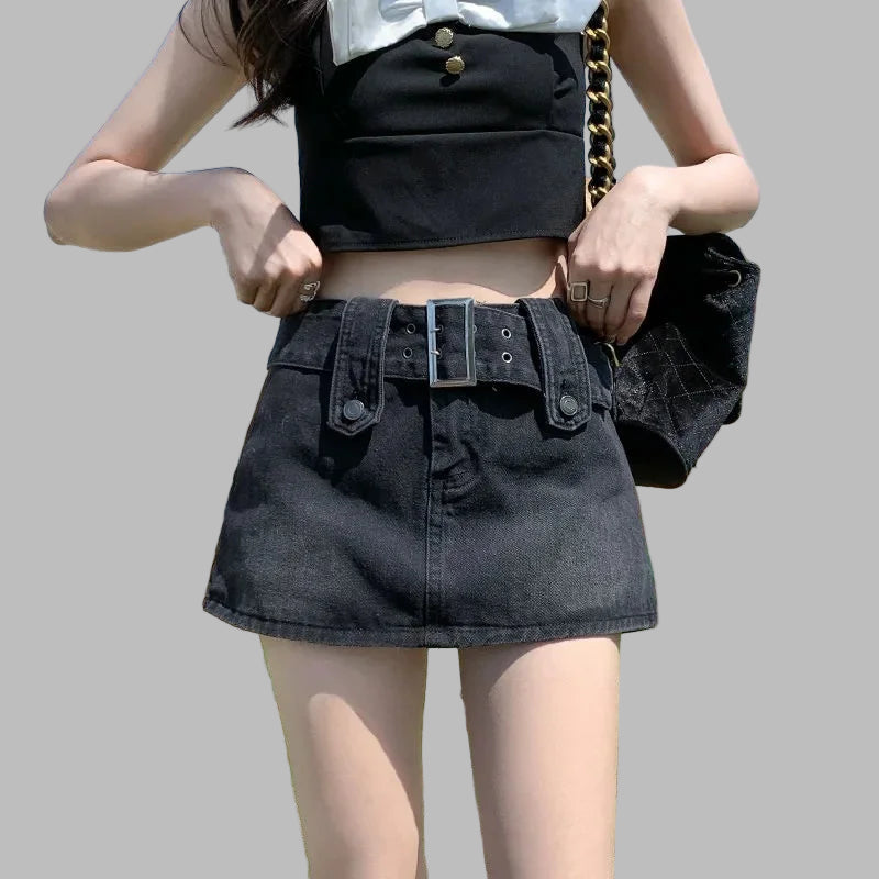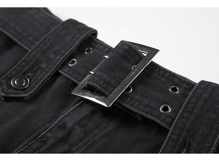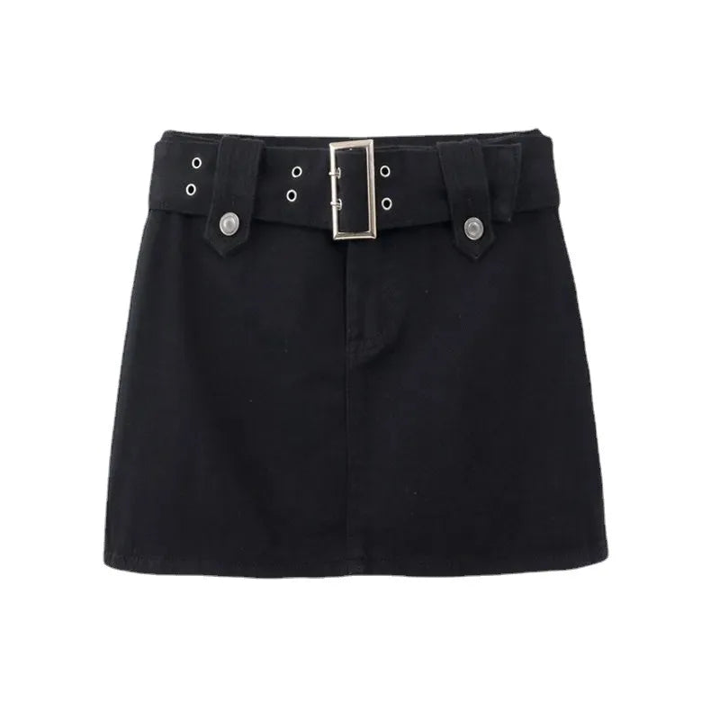 Schwarzer Jeansrock im Punk-Stil mit Metallgürtel