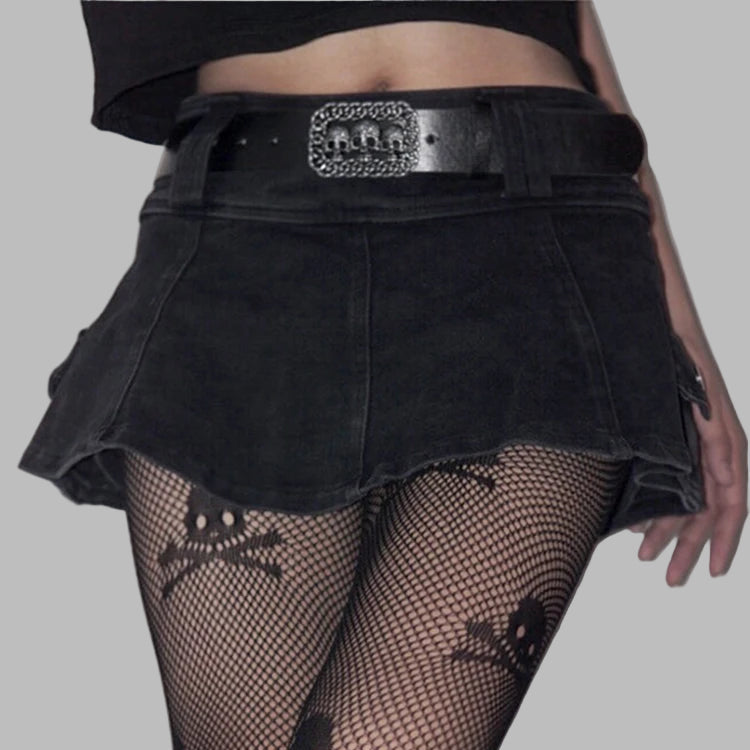 Schwarzer Punk-Jeansrock mit Metallgürtel im Cargo-Stil Optionen anzeigen