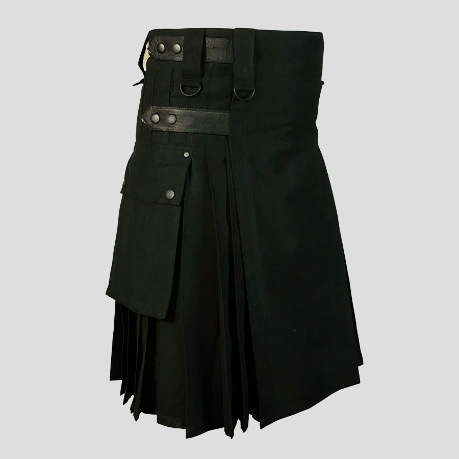 Schwarzer Punk-Kilt mit Metalldetails und Riemen