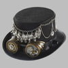 Schwarzer Steampunk-Hut mit Totenköpfen und Brille im Metal-Stil