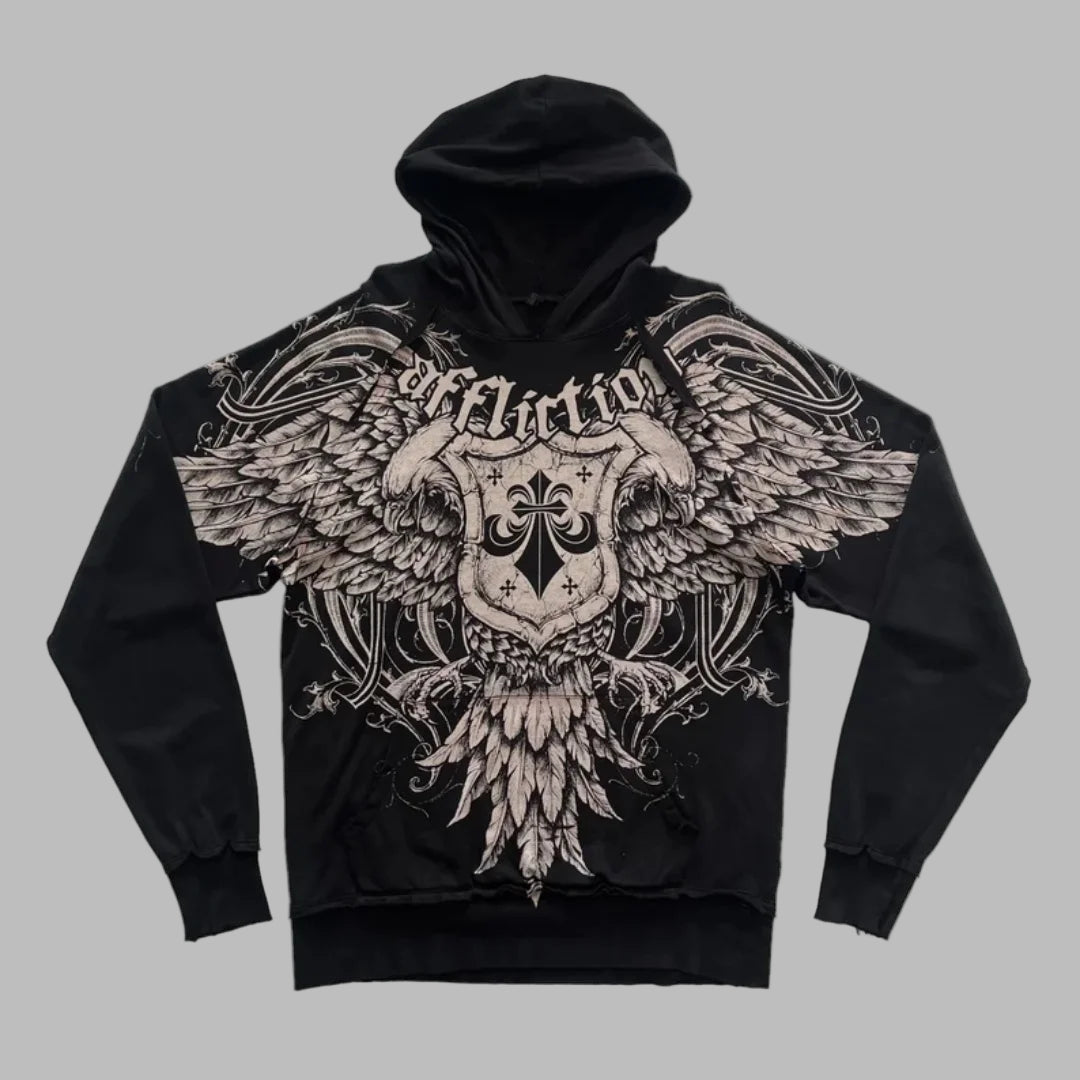 Affliction Rock Kapuzenpullover Schwarz mit Adler und Flügeln