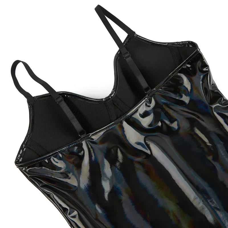 Schwarzes glänzendes Vinyl-Bustier – Sexy Punk-Stil
