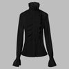 Schwarzes Goth-Rock-Hemd mit hohem Kragen und Rüschen