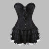 Schwarzes Gothic-Kleid mit Steampunk-Korsett, Spitze und Rüschen Optionen anzeigen