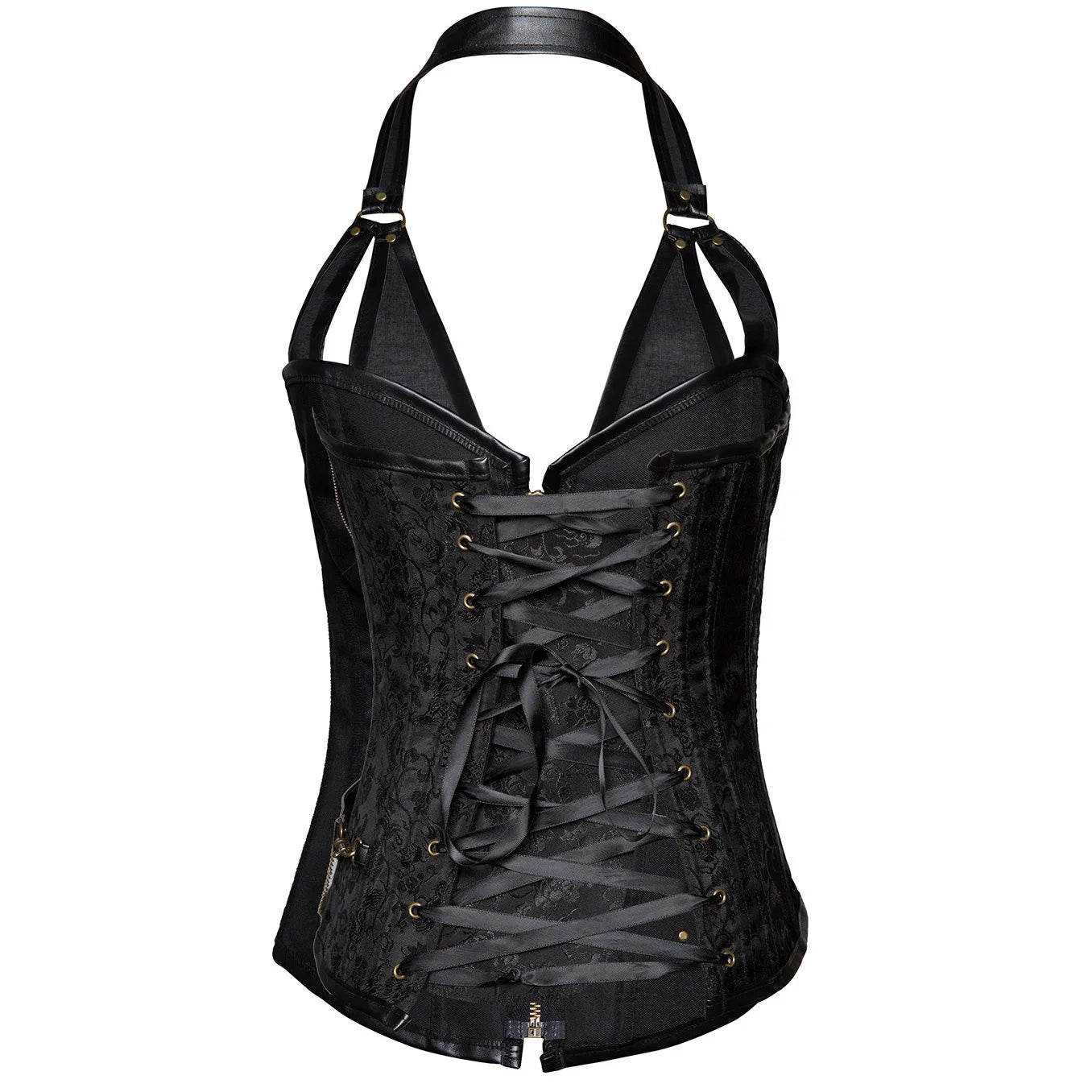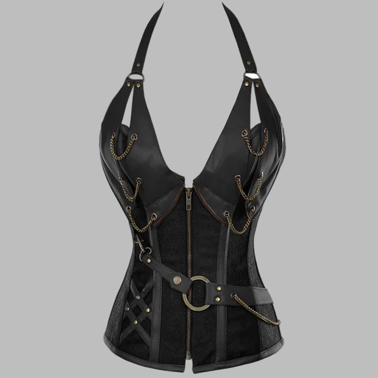 Schwarzes Gothic-Korsett im Punk-Stil mit Ketten und Lederelementen