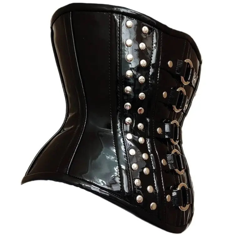 Schwarzes Gothic Punk Korsett mit Metallschnallen und Nieten 4XL