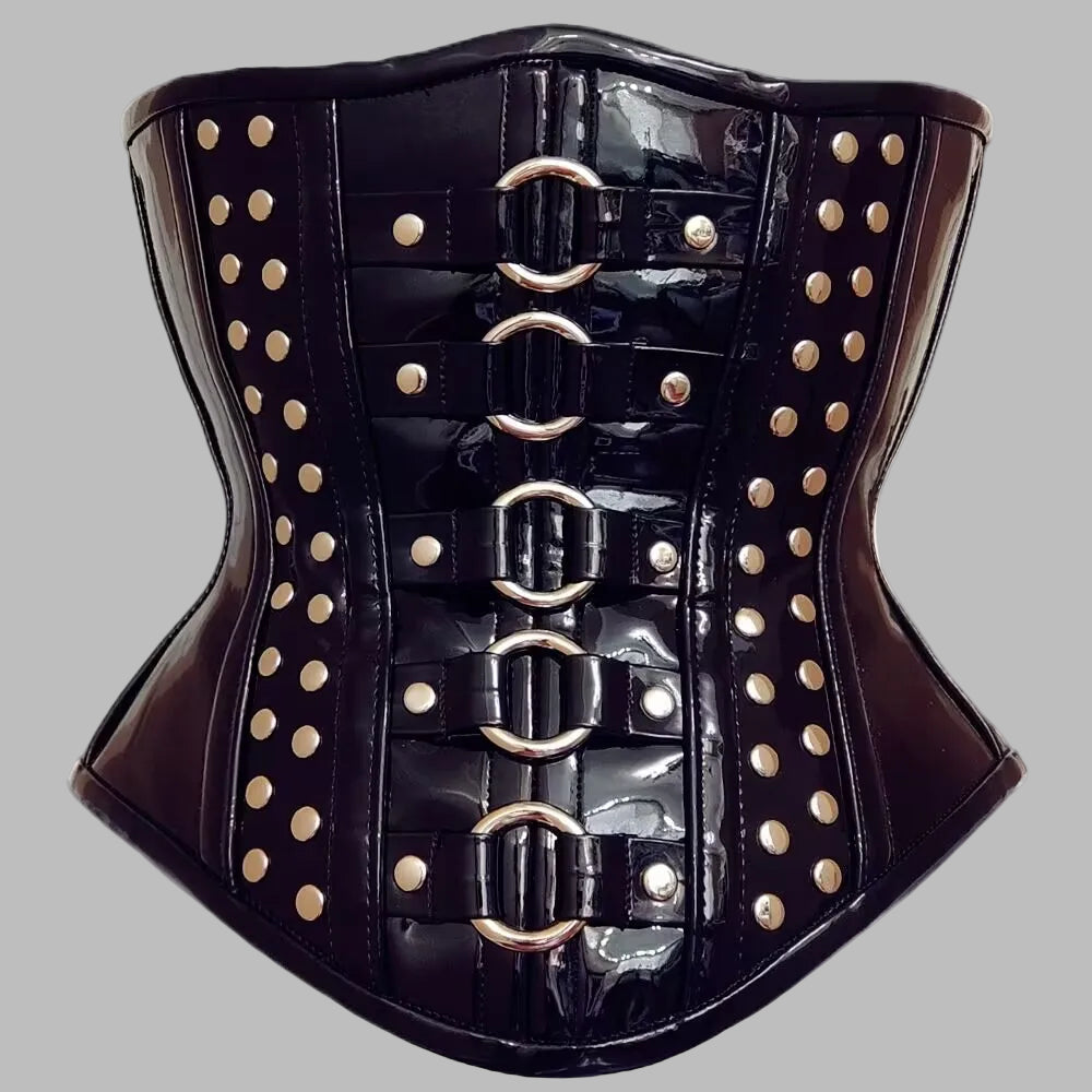 Schwarzes Gothic-Punk-Korsett mit Metallschnallen und Nieten