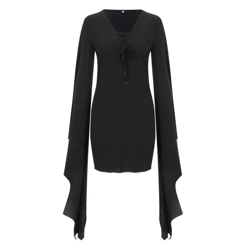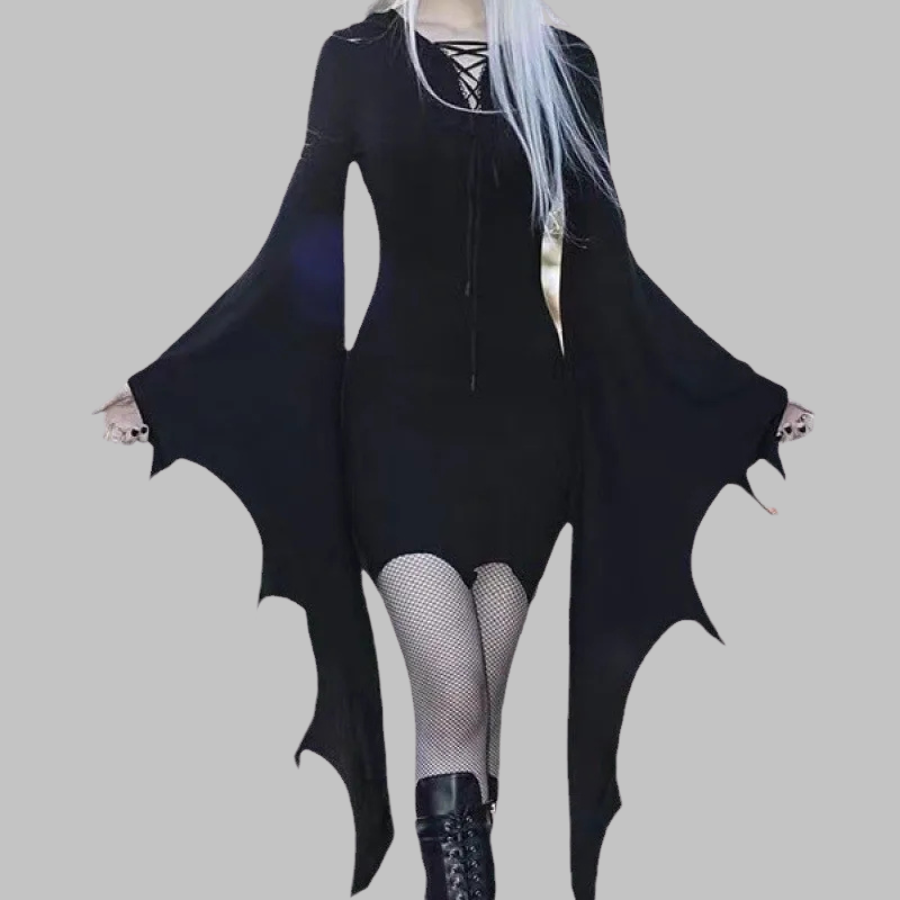 Schwarzes gotisches Fledermauskleid mit Flügelärmeln