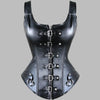 Schwarzes gothic Ledercorsage mit Reißverschluss und Schnallenriemen