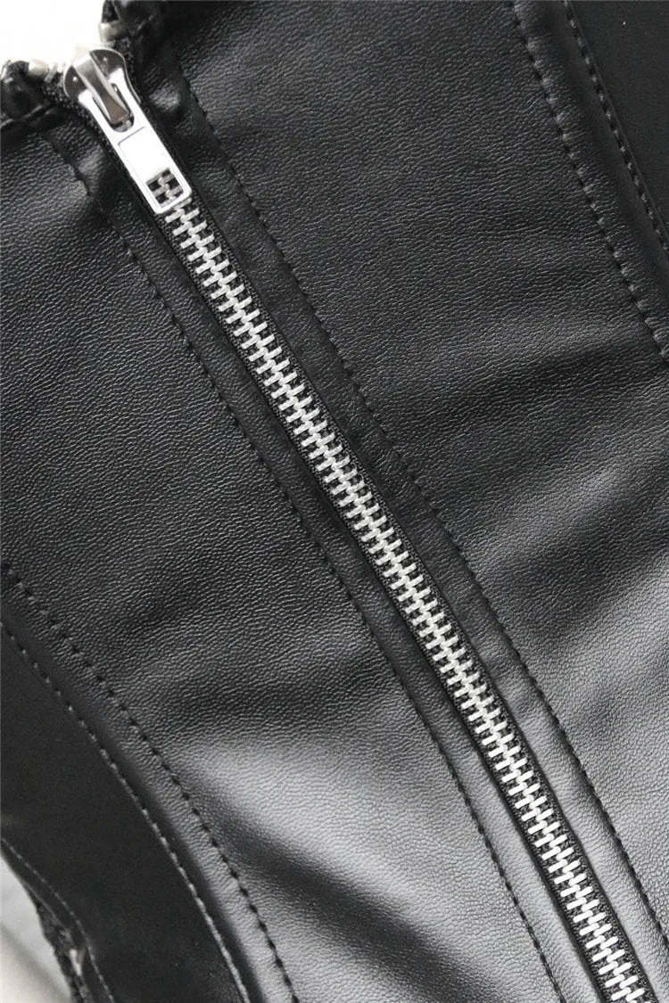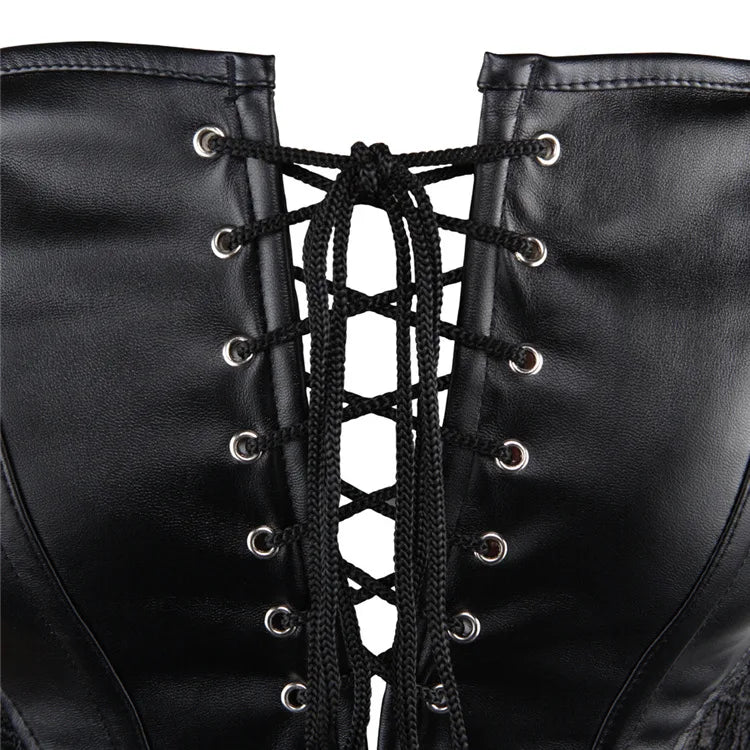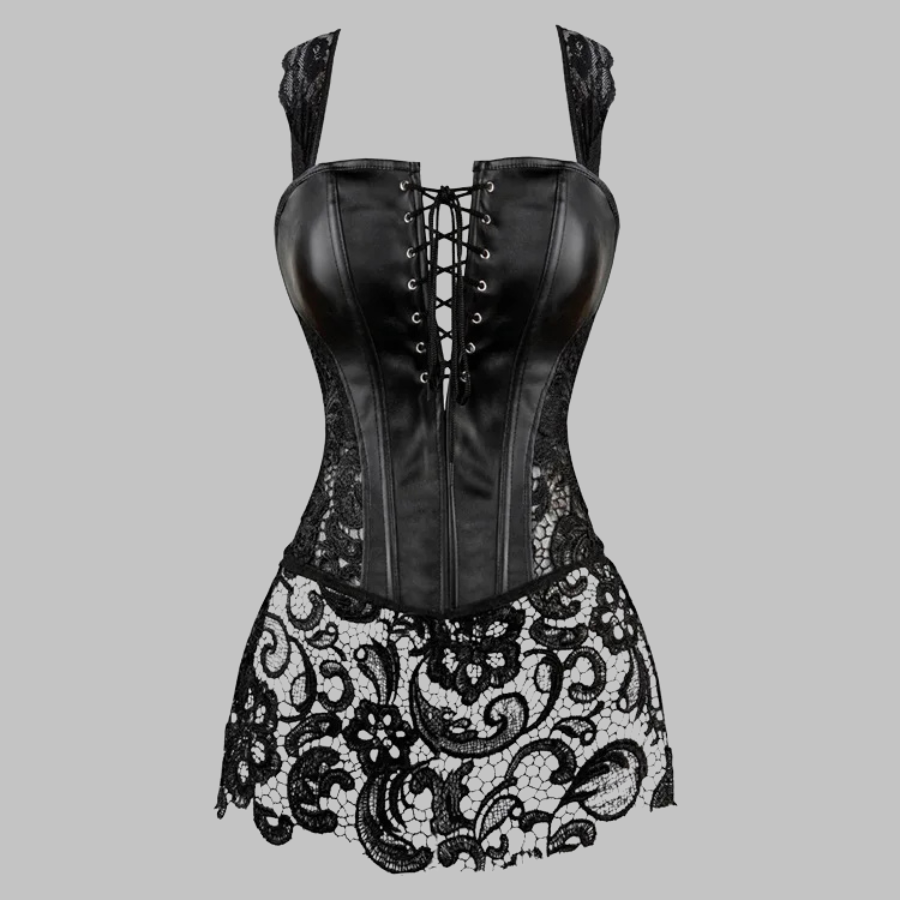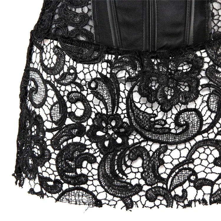 Schwarzes Korsett aus Kunstleder mit Blumen-Spitze – Burlesque-Stil