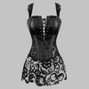 Schwarzes Korsett aus Kunstleder mit Blumen-Spitze – Burlesque-Stil Optionen anzeigen