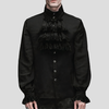 Schwarzes Metallhemd mit Spitzenjabot und Manschetten