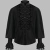 Schwarzes Metallhemd mit Spitzenjabot und Manschetten