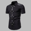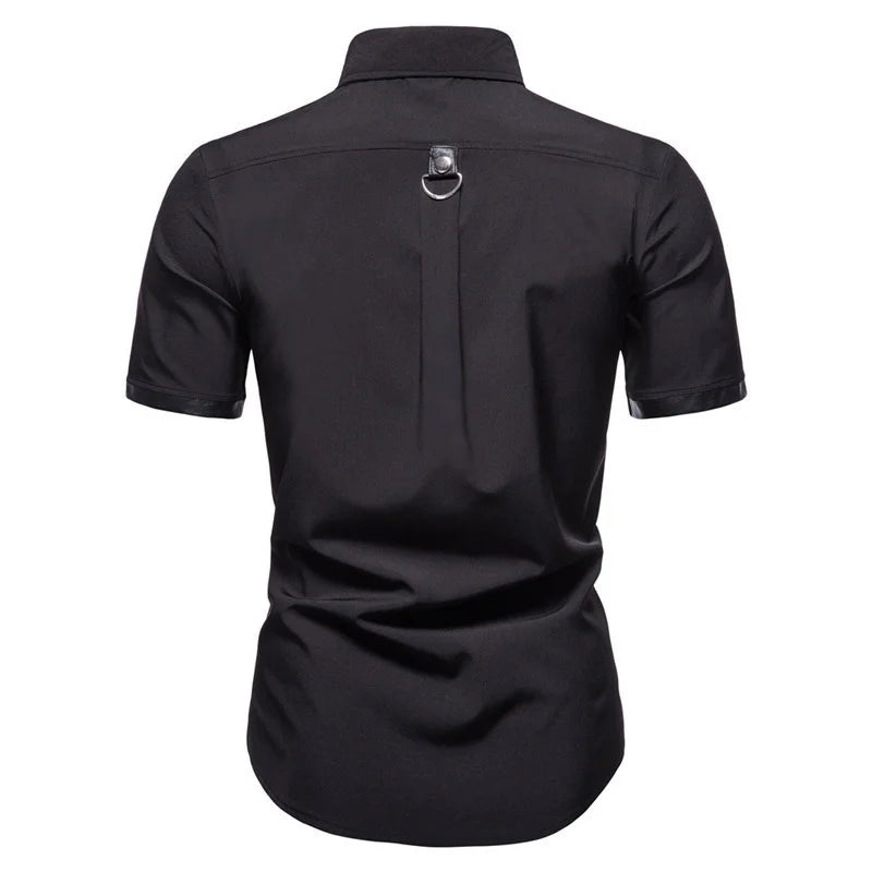 Schwarzes Punk-Hemd mit Metallringen und Streifen, Kurzarm