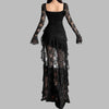 Schwarzes Rock-Kleid mit Spitze und asymmetrischem Saum