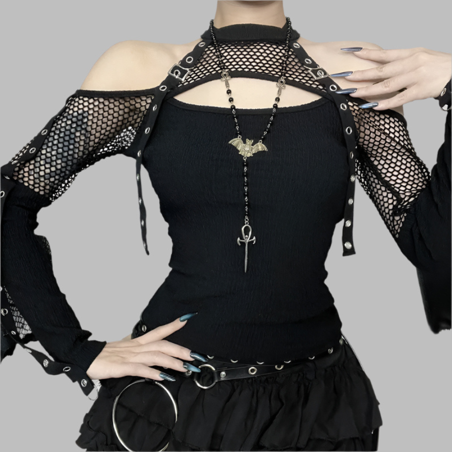 Sexy Gothic T-Shirt aus schwarzer Spitze