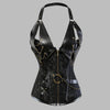 Steampunk Gothic Korsett mit Ketten, Reißverschlüssen und Lederriemen Schwarz