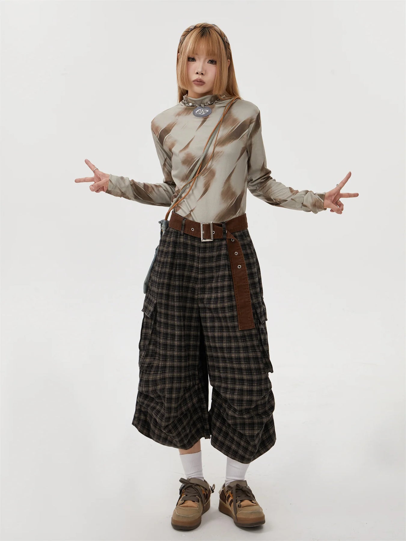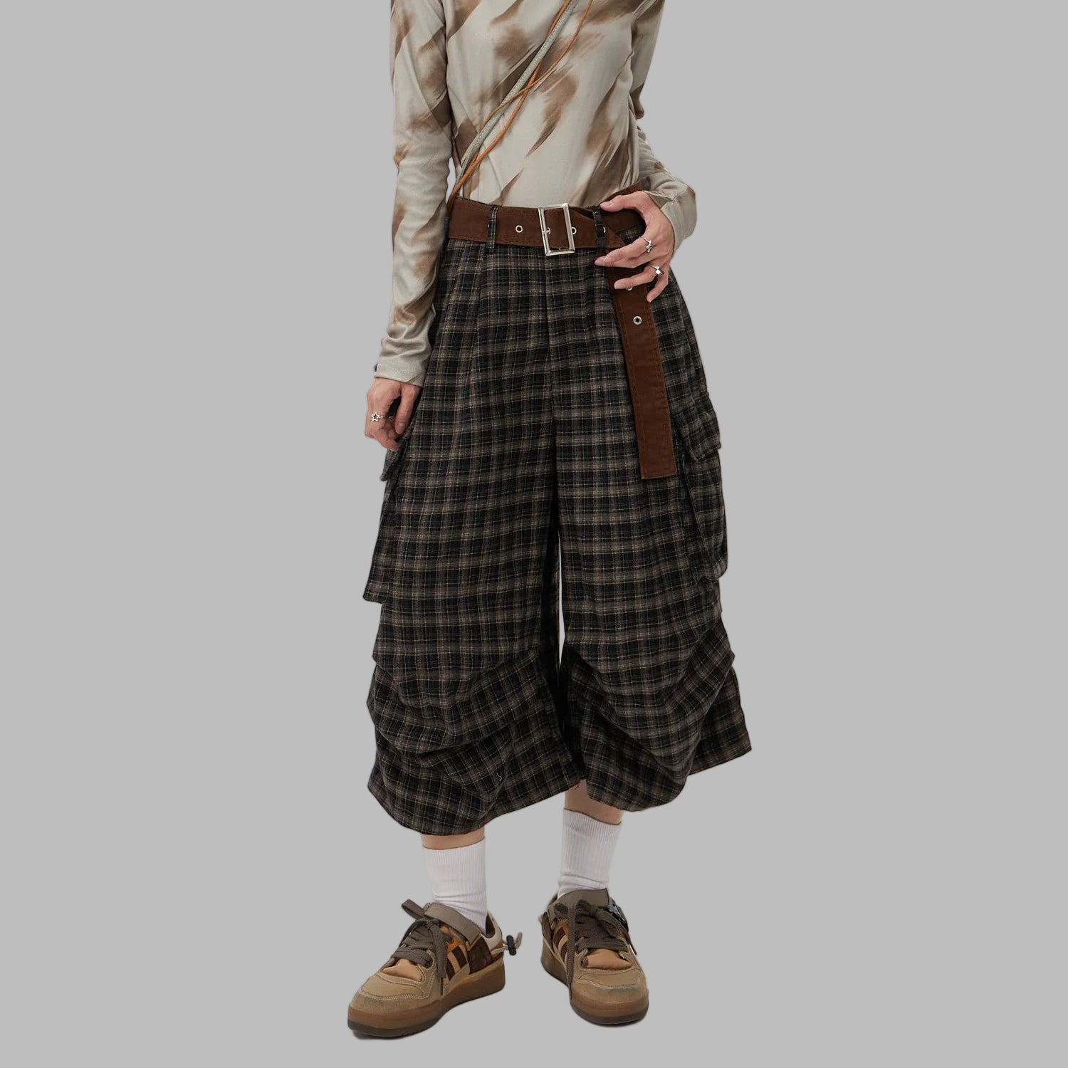Steampunk Karierte Hose mit Gürtel Khaki Vintage