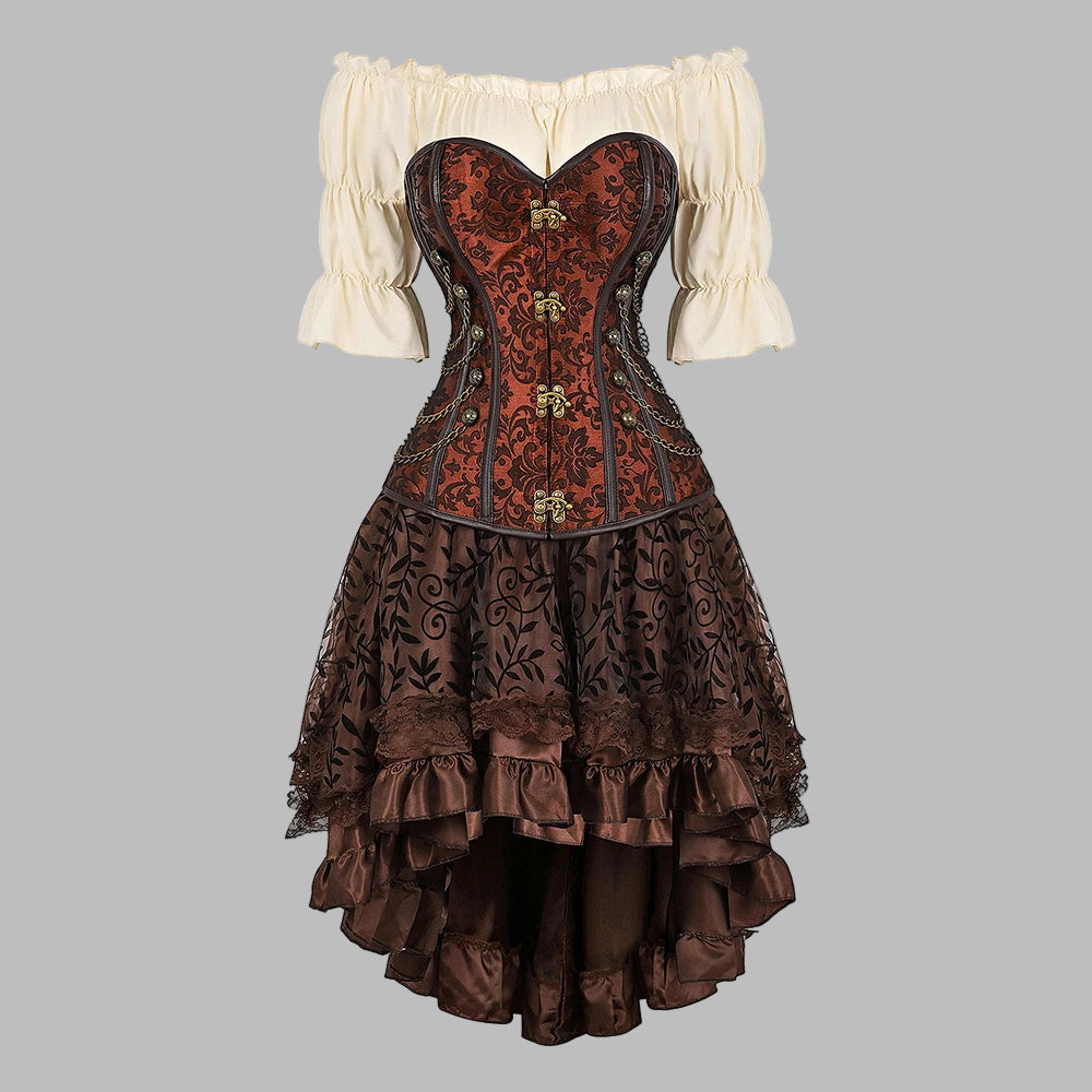 Steampunk-Kleid mit Brokatkorsett und Rüschenrock