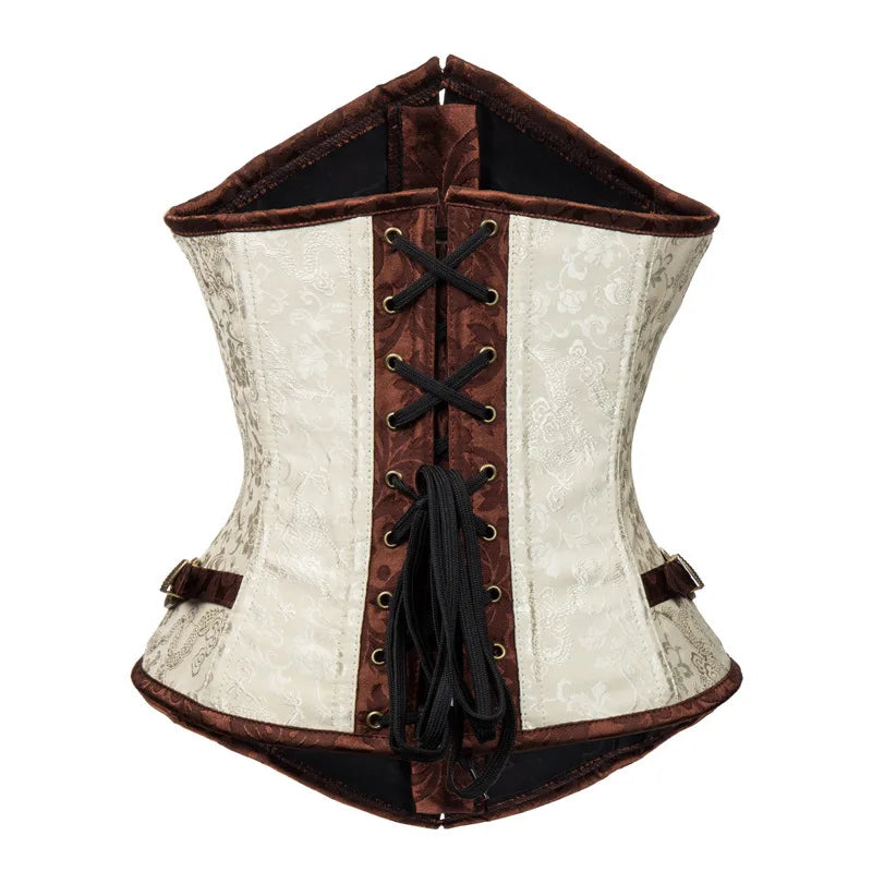 Steampunk-Korsett braun-creme retro mit Metallschnallen
