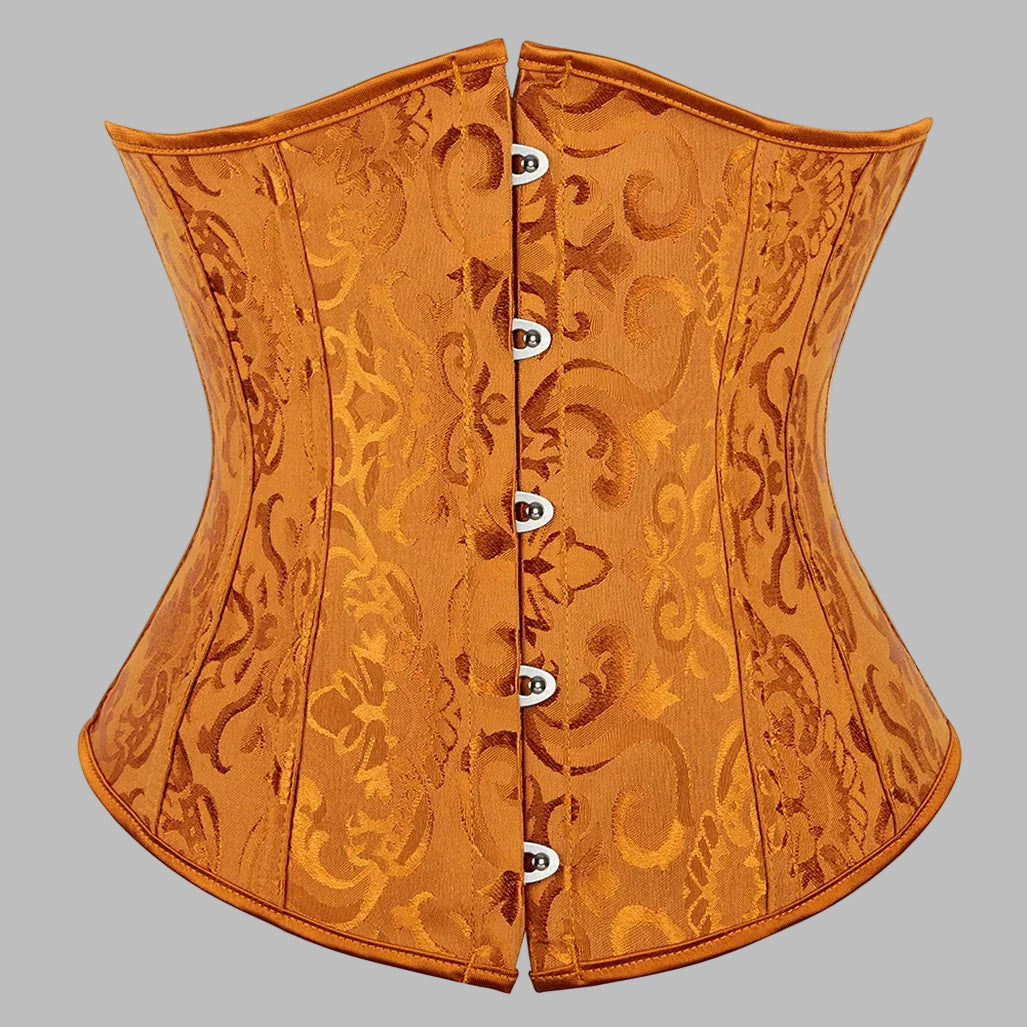 Steampunk-Korsett Orange mit geprägtem Vintage-Muster