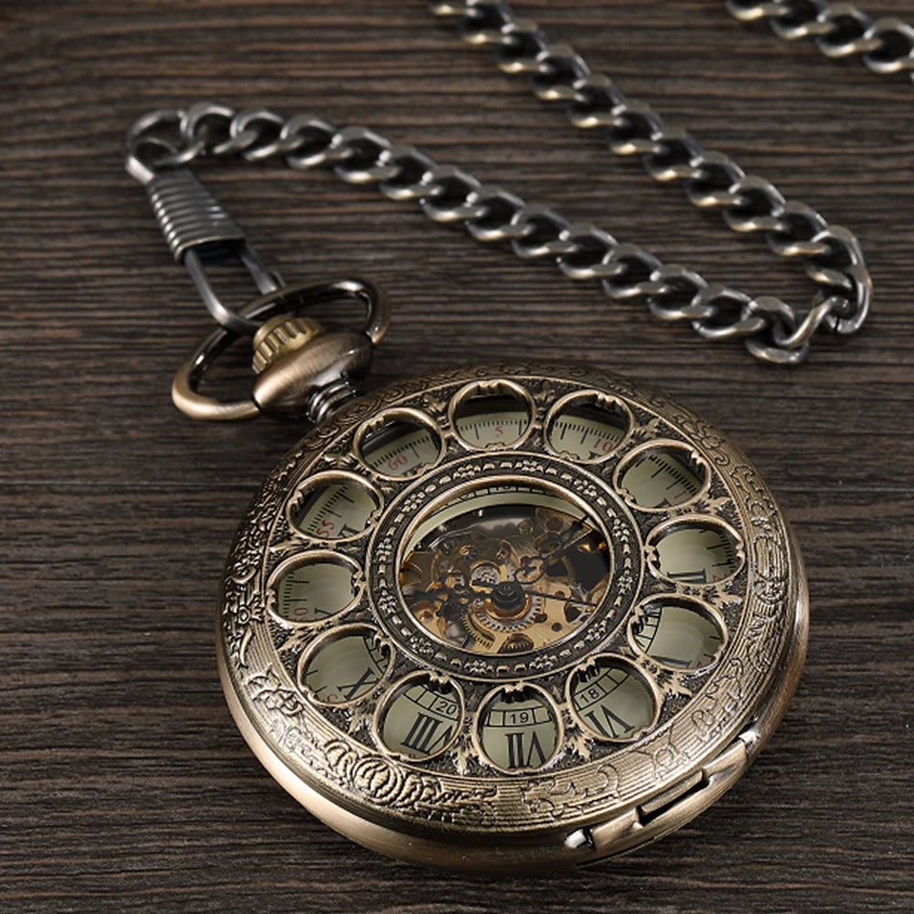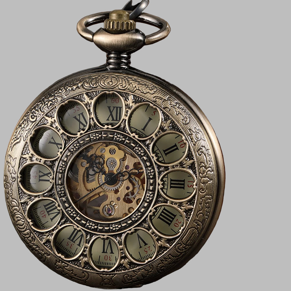 Steampunk Mechanische Taschenuhr Braun mit Kette