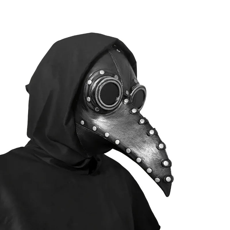 Steampunk Pestdoktor Maske Schwarz Leder mit Nieten