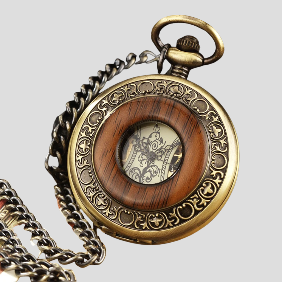 Steampunk Taschenuhr mit Holzeinlage Braun