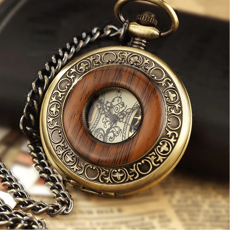 Steampunk Taschenuhr mit Holzeinlage Braun Optionen anzeigen