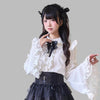 Weiße gothic Bluse mit schwarzer Spitze und Schleife Jirai Kei Lolita