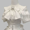 Weiße gotische Kawaii Lolita Bluse mit Spitze, Schleife und Korsettgürtel