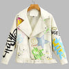 Weiße Lederjacke im Biker-Stil mit Graffiti Punk