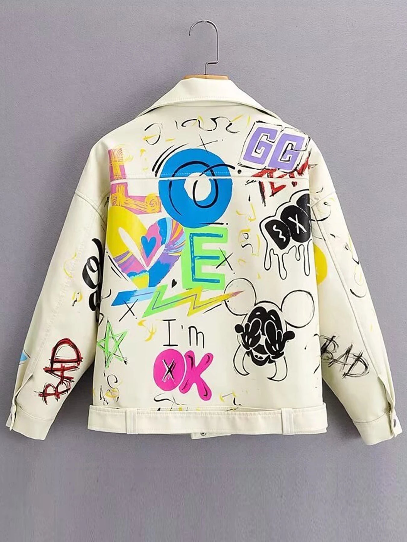 Weiße Lederjacke im Biker-Stil mit Punk-Graffiti