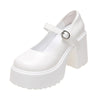Weiße Mary Jane Plattformschuhe mit Riemen und Schnalle