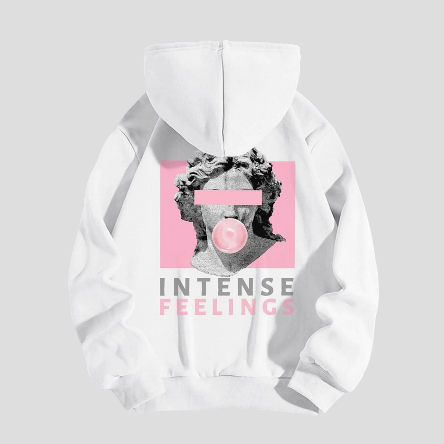 Weiße Pop-Art-Sweatshirt mit rosa Grafik Intense Feelings