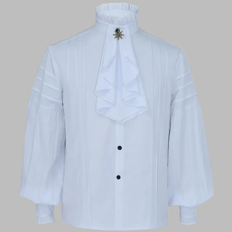 Weiße Steampunk-Bluse mit Jabot und Puffärmeln