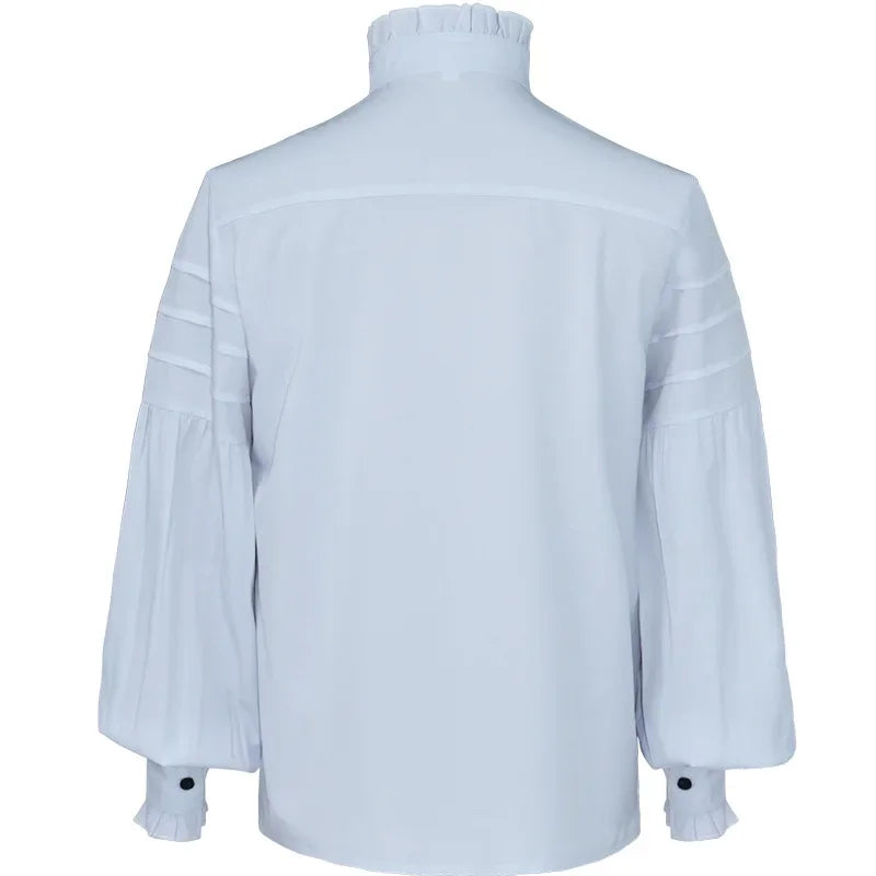 Weiße Steampunk-Bluse mit Rüschen und Puffärmeln