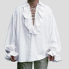 Weißes Steampunk-Hemd mit Schnürung und Spitzenmanschetten