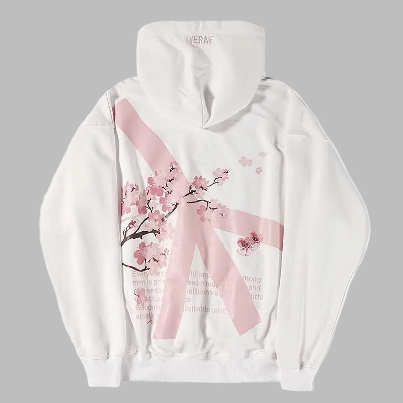 Weiße Jirai Kei Sweatshirt mit Rosa Kirschblüten